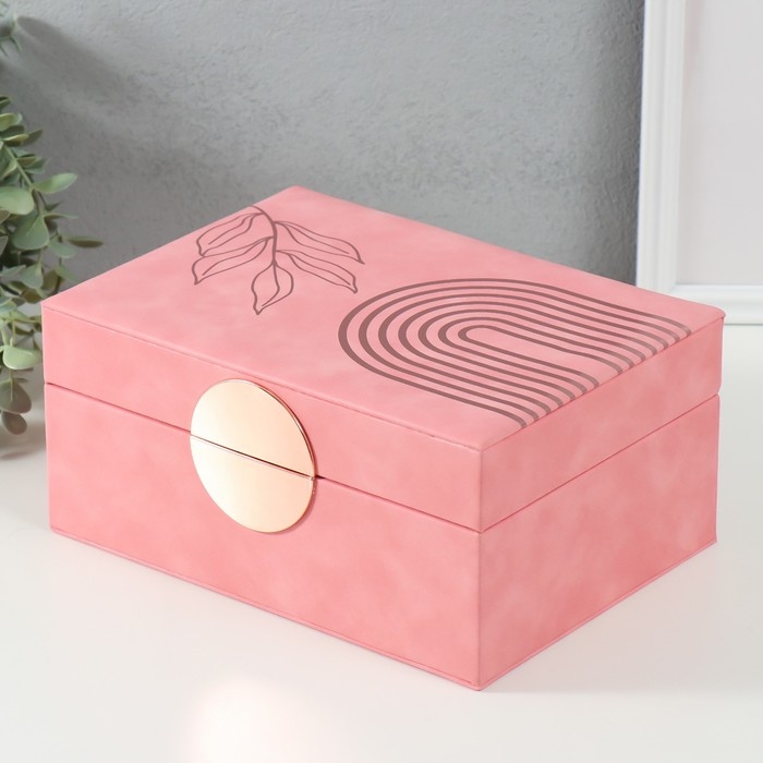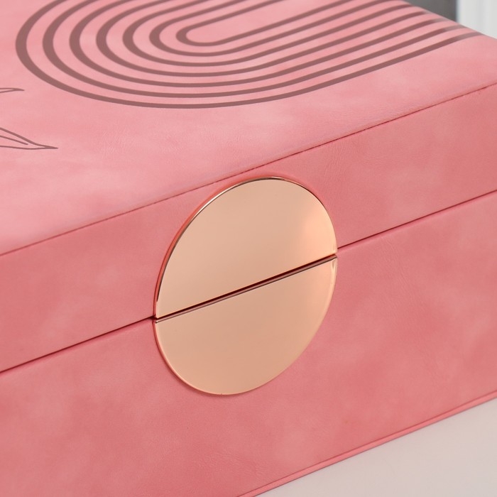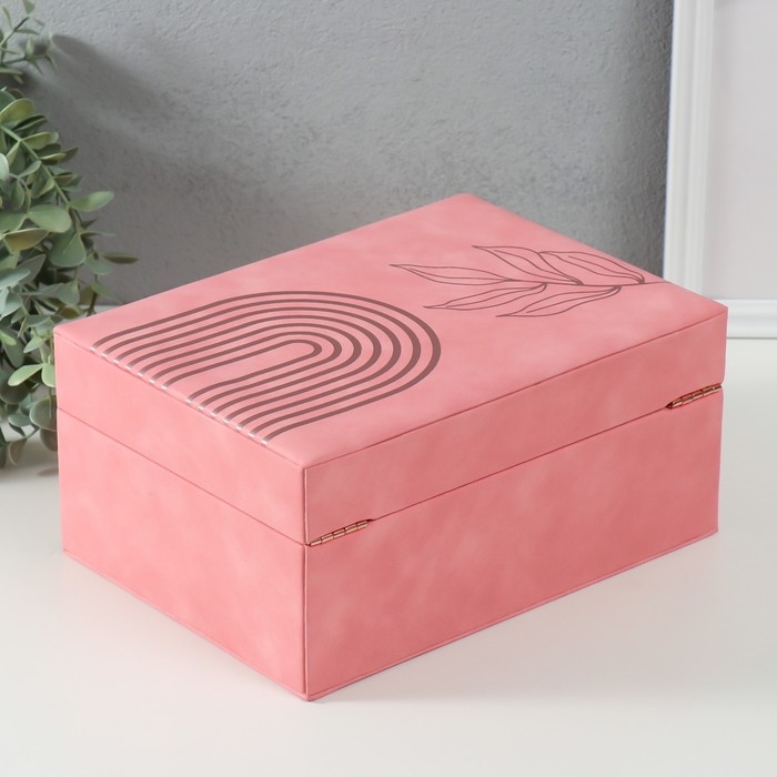 Шкатулка кожзам для украшений "Веточка. Радуга" розовая 18х24,5х11 см