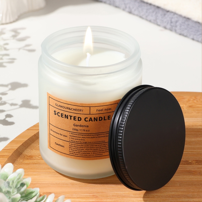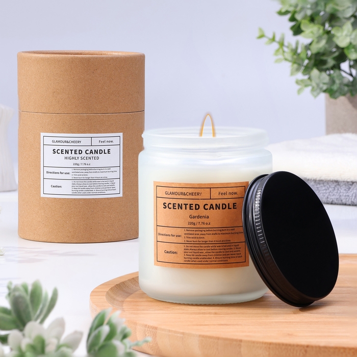 Свеча ароматическая в банке "AmeHome", 220 г, гардения жасминовидная, в тубусе