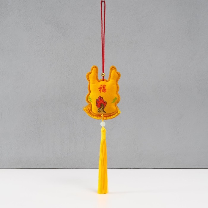 Подвеска-саше текстиль "Дракон" жёлтая 2х7,5х24 см
