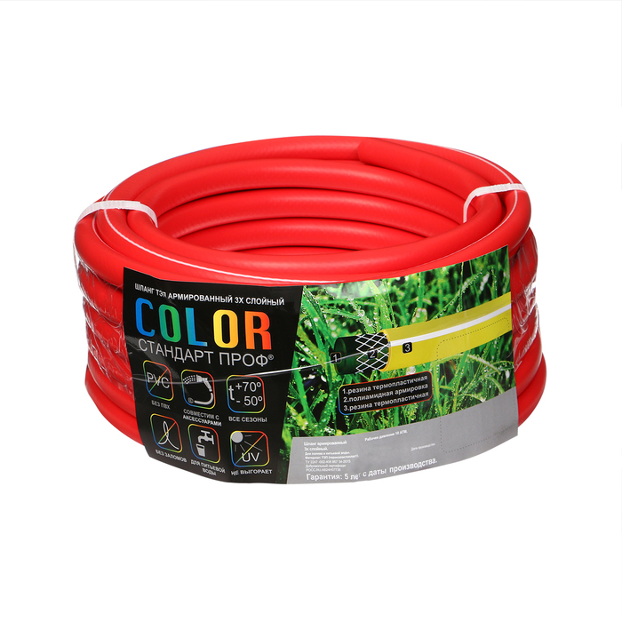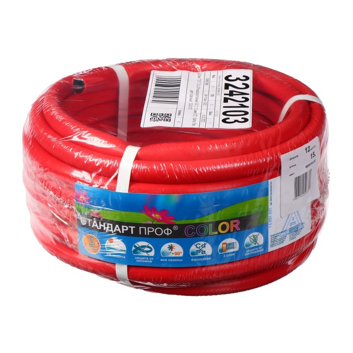 Шланг поливочный морозостойкий, ТЭП, 12 мм (1/2"), 15 м, армированный, COLOR, красный
