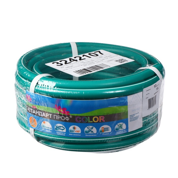 Шланг поливочный морозостойкий, ТЭП, 12 мм (1/2"), 15 м, армированный, COLOR, зелёный