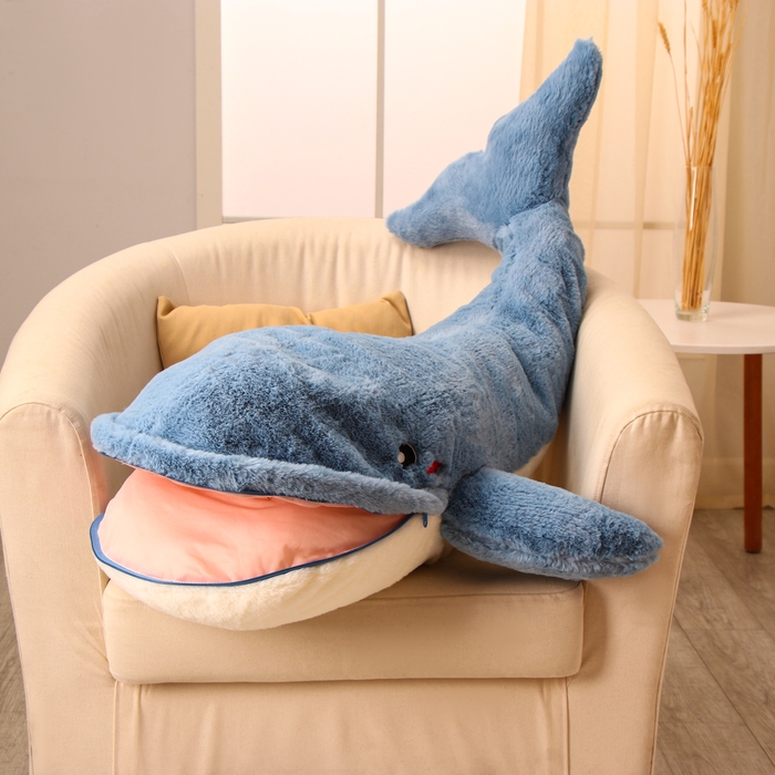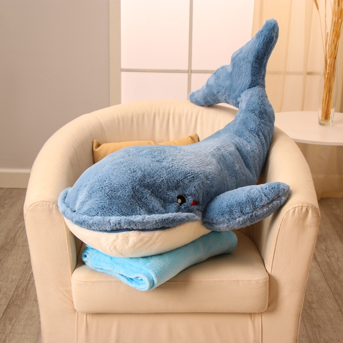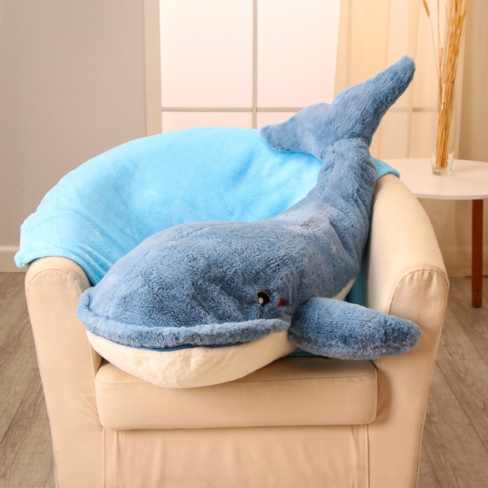 Мягкая игрушка «Кит», 90 см, с пледом, рот на молнии