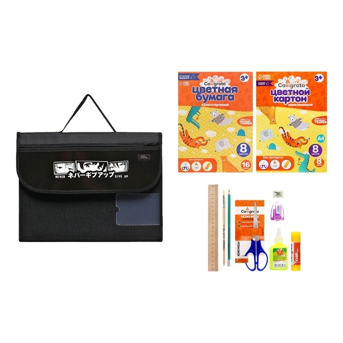 Папка для труда А4, с ручками, раскладная на липучке, текстильная, 10 предметов "Аниме"