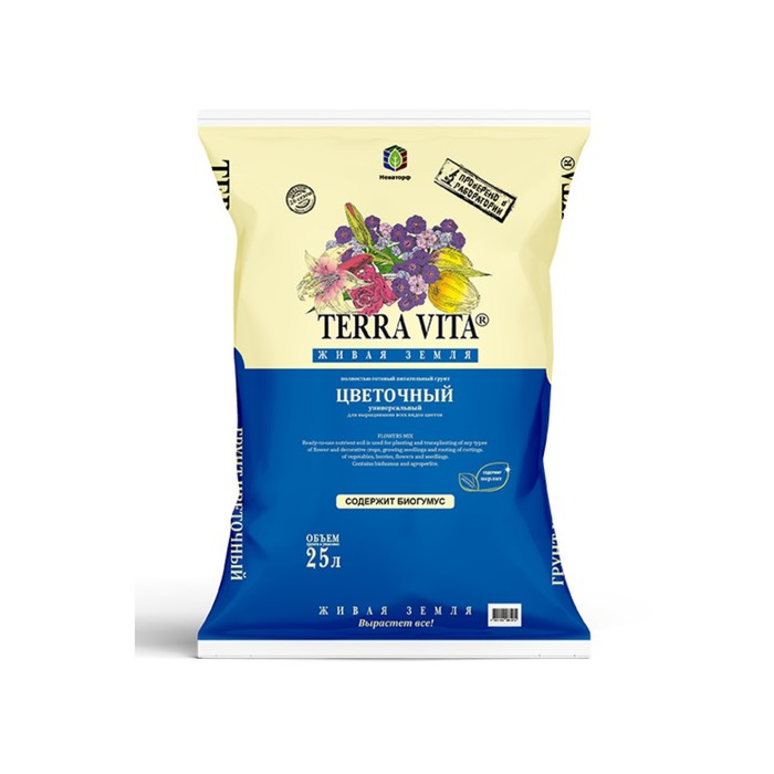 Грунт Живая Земля, цветочная, 25 л