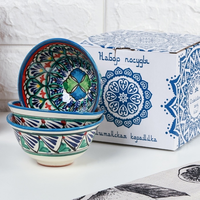Набор больших пиал Риштан "Узоры" 3 шт в подарочной упаковке, 11 см, микс