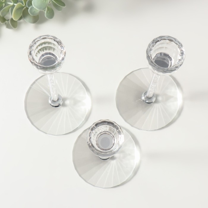 Подсвечник стекло на 1 свечу d=2 см "Альфир" набор 3 шт 6,5х6,5х20 18 15 см