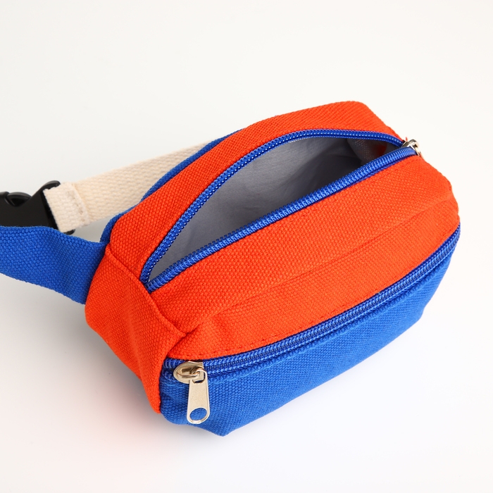Сумка детская поясная на молнии, наружный карман, цвет синий/красный