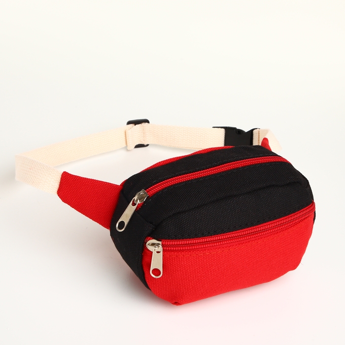 Сумка детская поясная на молнии, наружный карман, цвет красный/чёрный