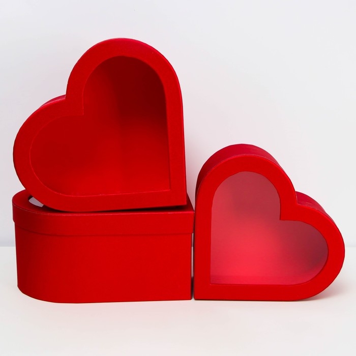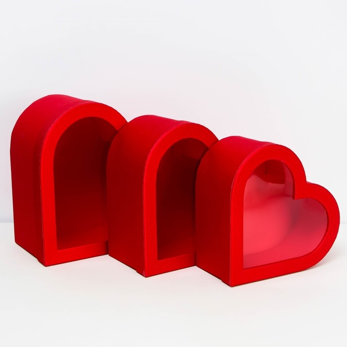 Набор коробок с окном 3 в 1 сердца L:28.5x26.3x13 M:26x24x11.5 S:23.5x21.5x10 см