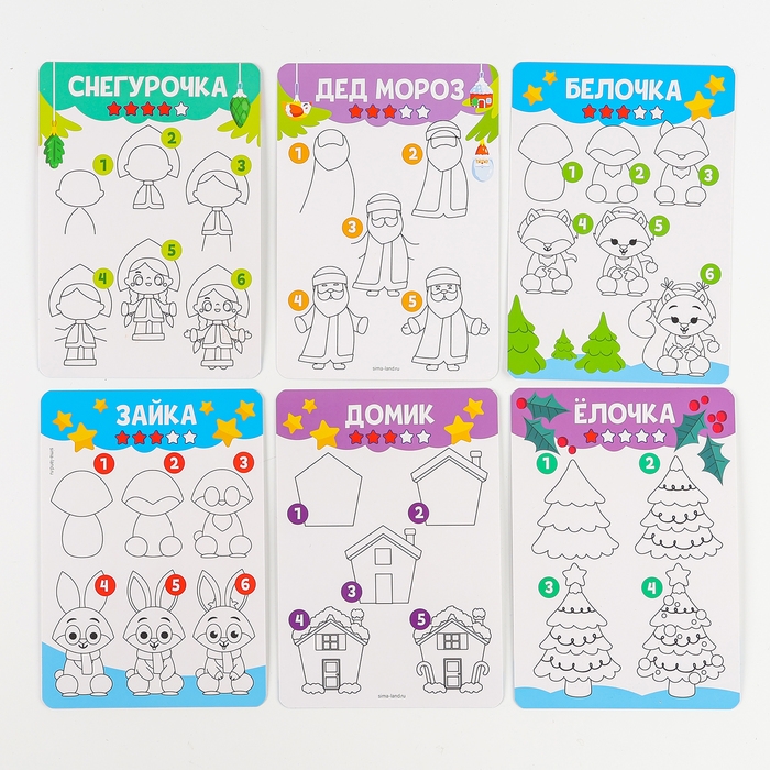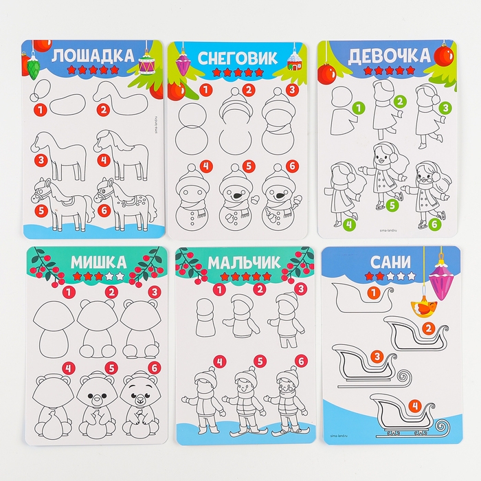 С таким набором ребёнок сможет научиться рисовать новогодних персонажей по шагам!.
