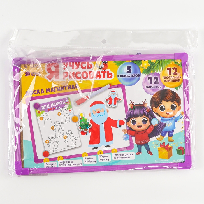 Магнитная маркерная доска на новый год «Я учусь рисовать. Зимние рисунки»