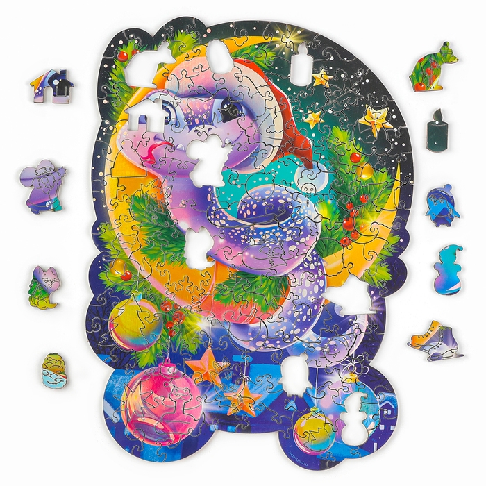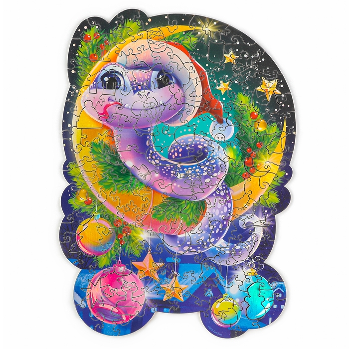 Пазлы фигурные деревянные «Волшебная змея» с голографией, 137 элементов, символ года 2025