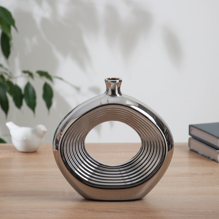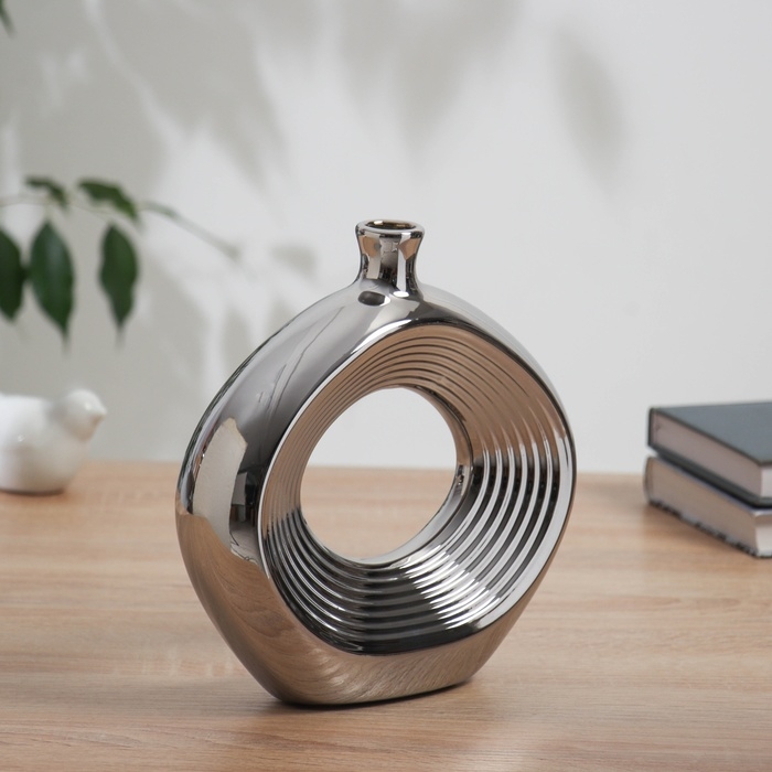 Ваза керамика настольная "Брэм" овал, 20х19 см, серебро