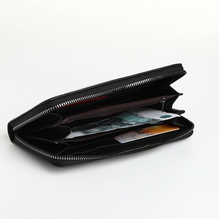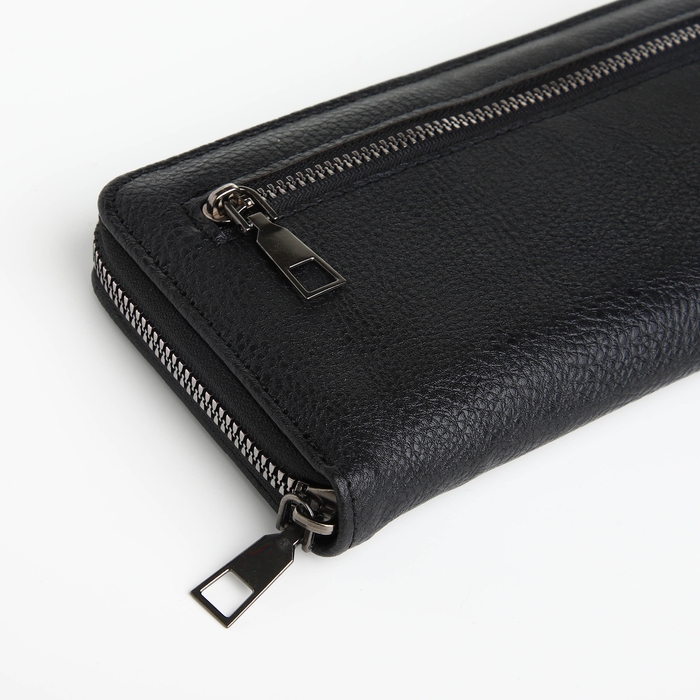 Портмоне мужское на молнии, отдел для карт, монет, цвет чёрный
