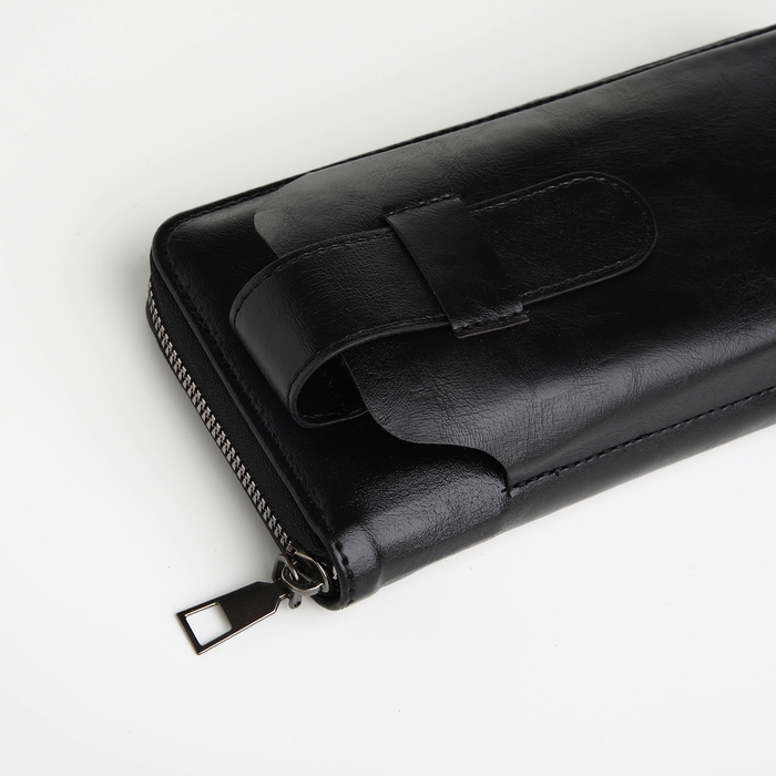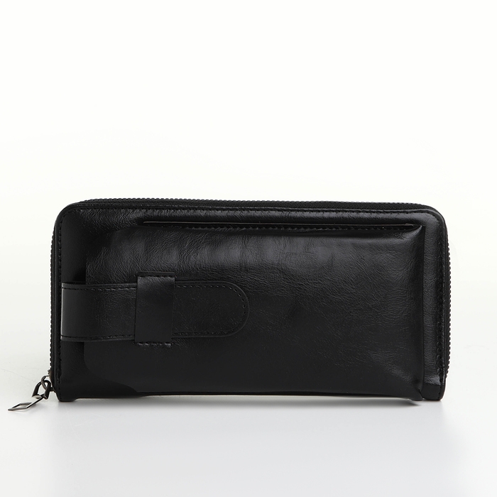 Портмоне мужское на молнии, отдел для телефона, карт, монет, цвет чёрный