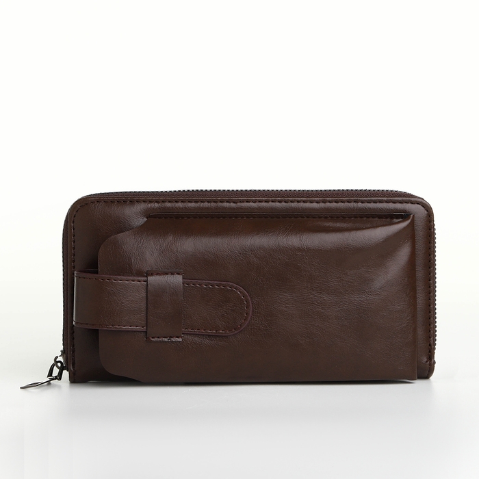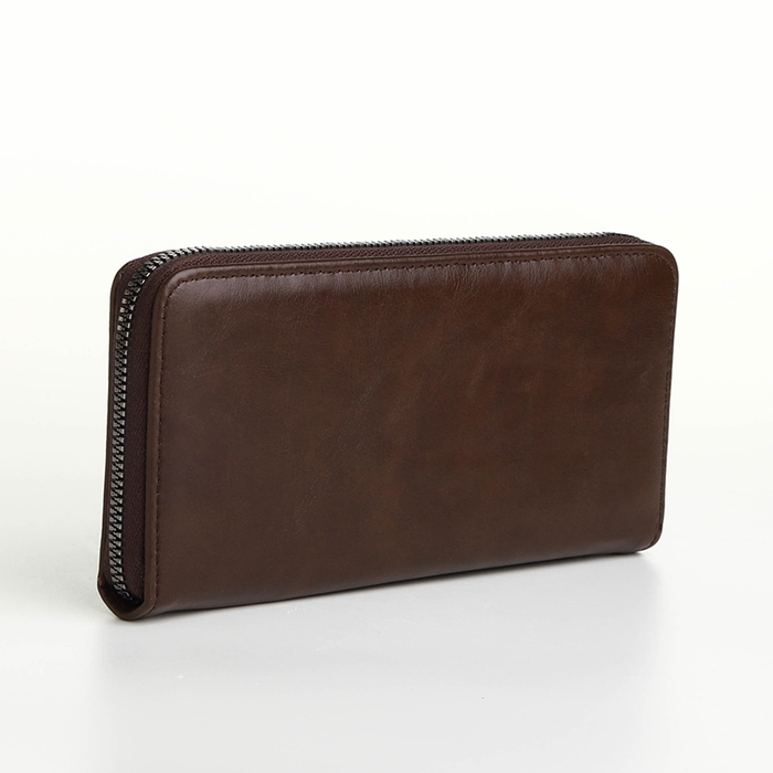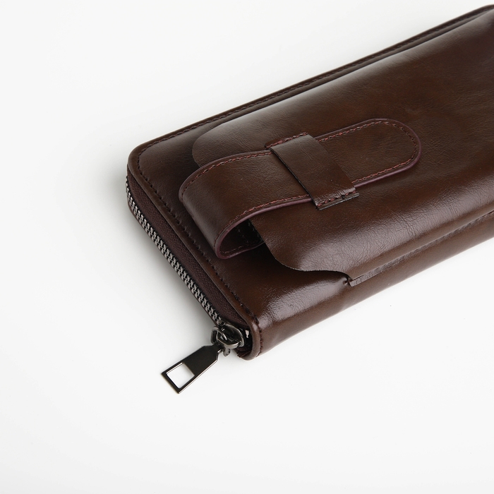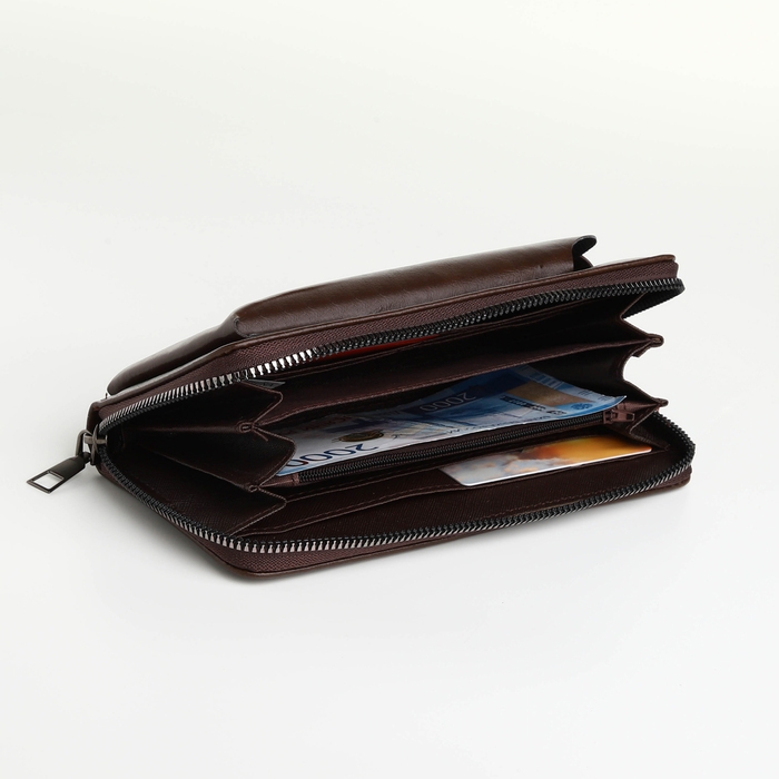 Портмоне мужское на молнии, отдел для телефона, карт, монет, цвет коричневый