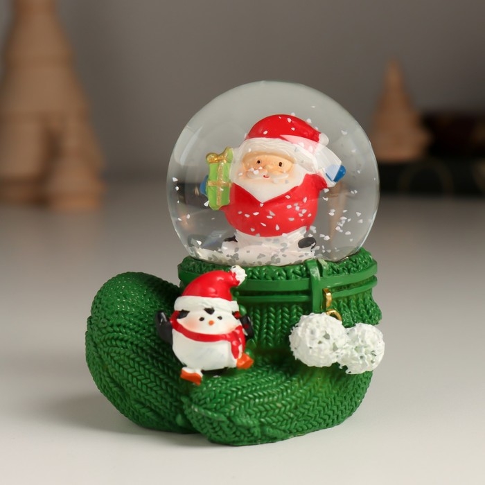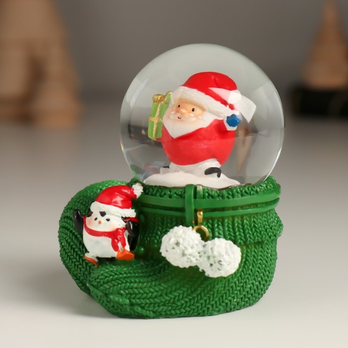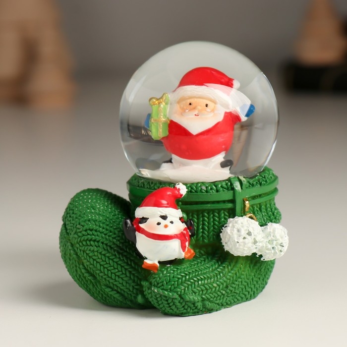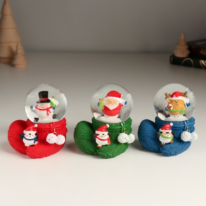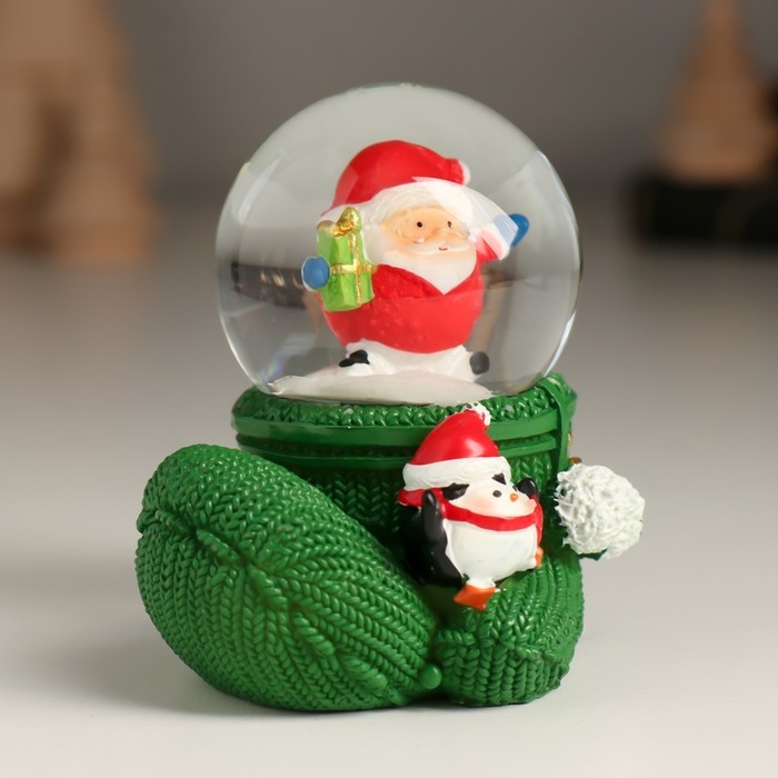Сувенир полистоун водяной шар "Новогодний персонаж на варежке с пингвином" МИКС 5,5х6,2х7 см 10473