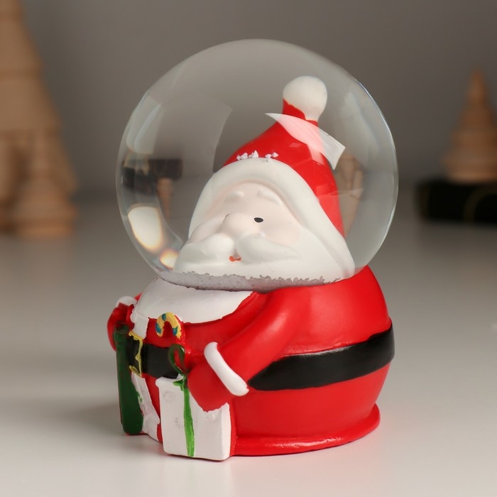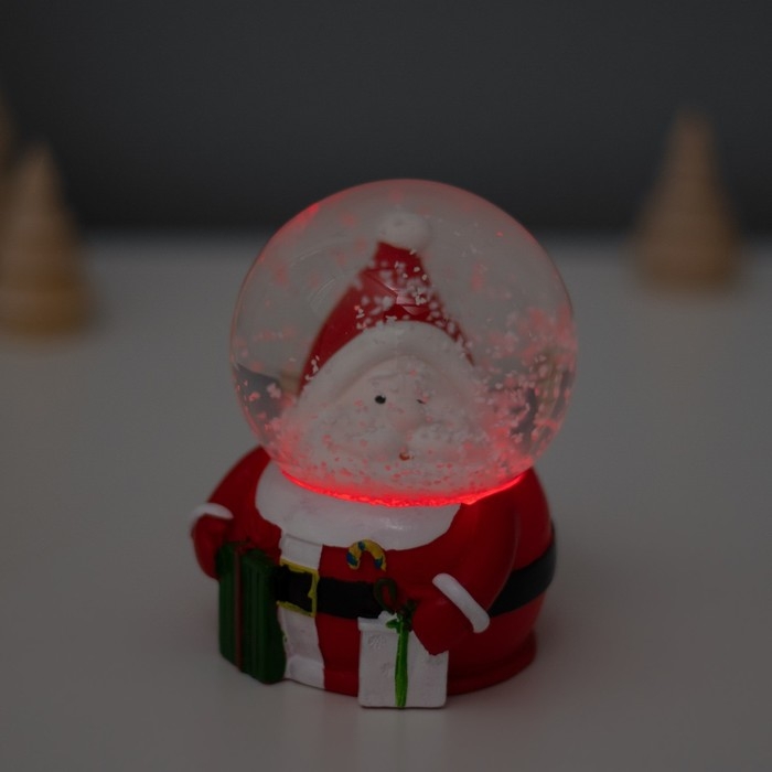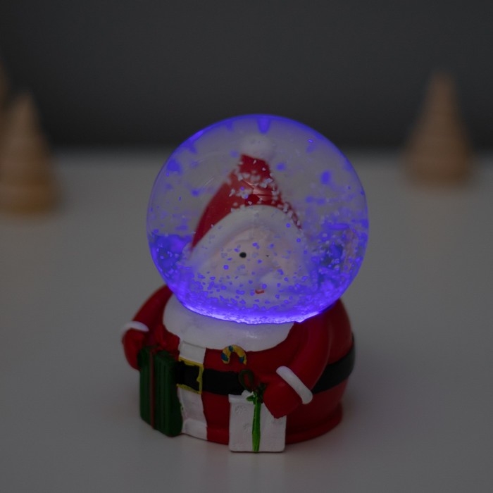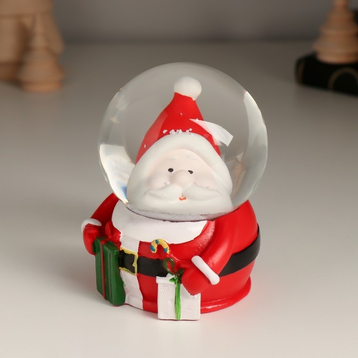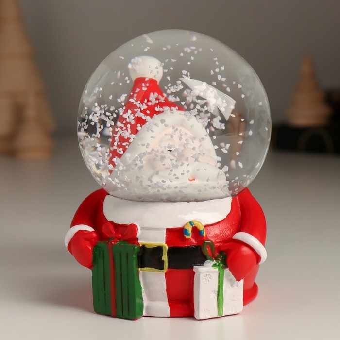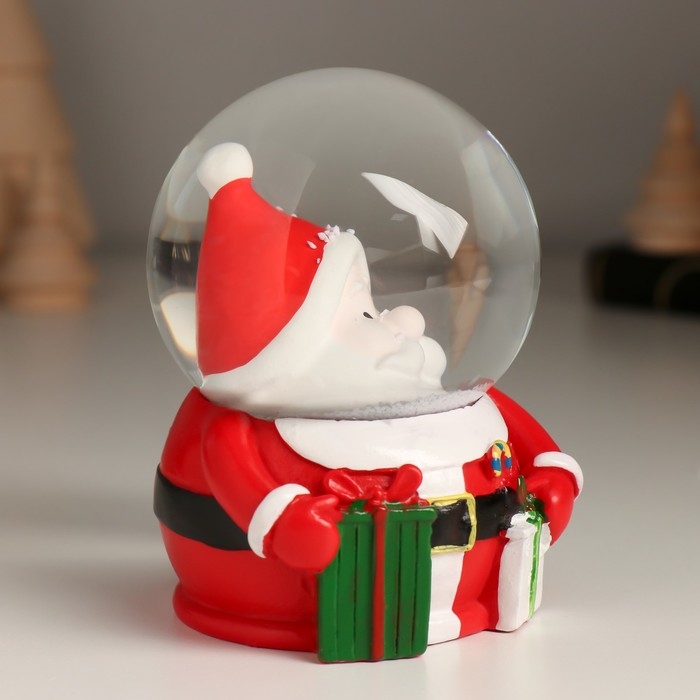Сувенир полистоун водяной шар свет "Дед Мороз с подарками в шлеме-пузыре" 6,5х6,7х9,5 см