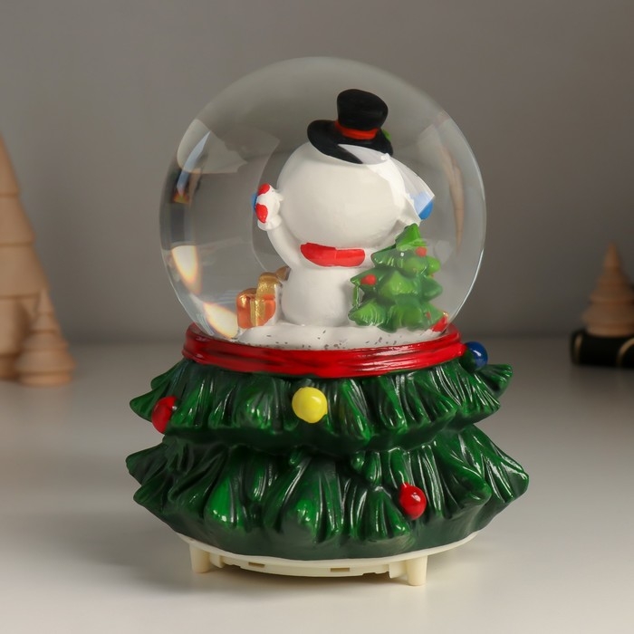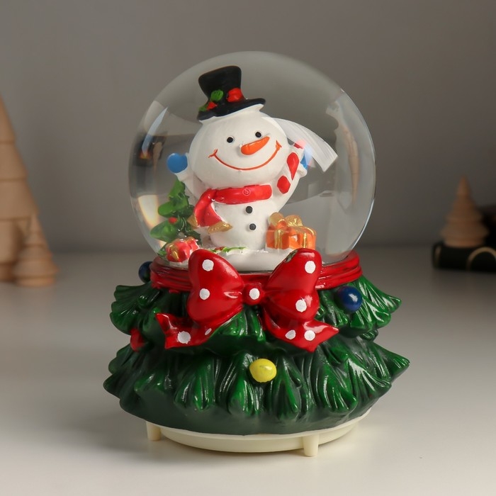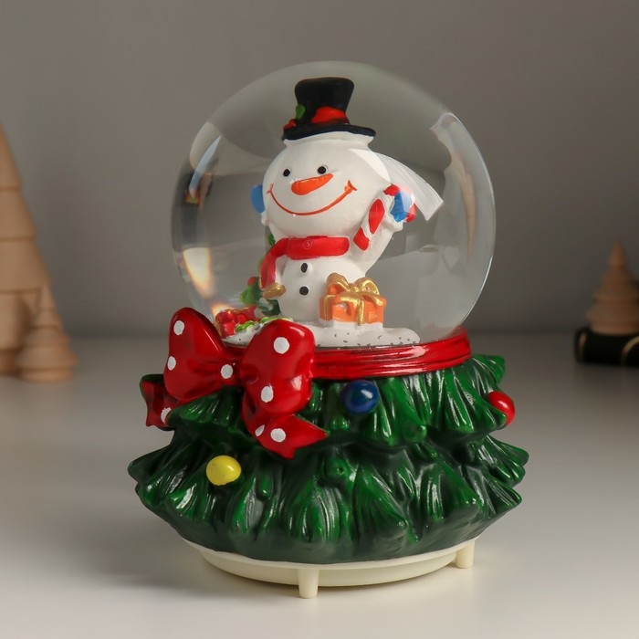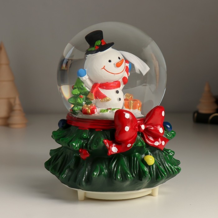 Сувенир полистоун водяной шар свет, музыка, снег кружится "Снеговик" 12х12х15,5 см