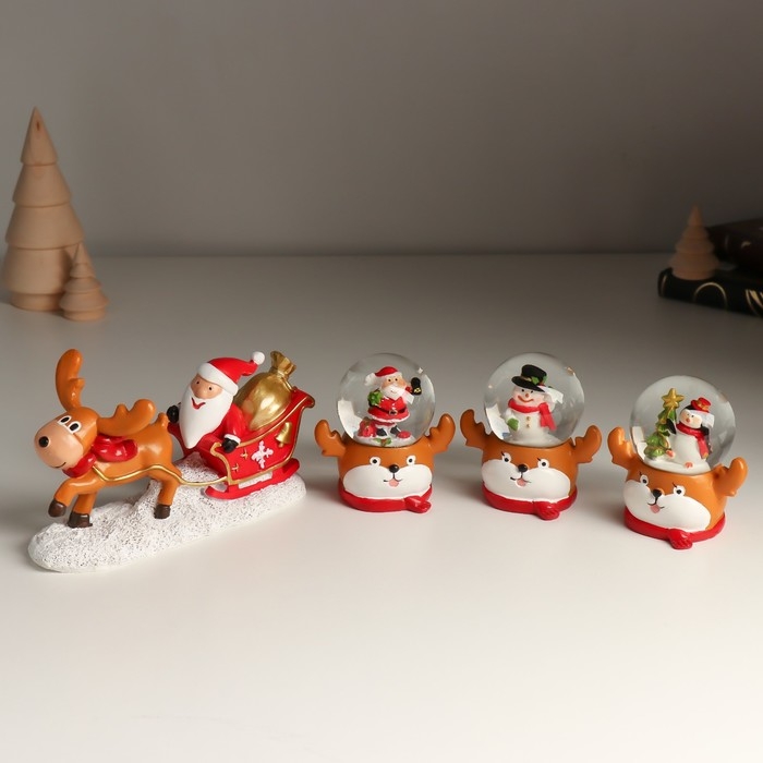 Сувенир полистоун водяной шар "Дед Мороз и сани с оленем" набор 4 шт 33,5х5х9,5 см