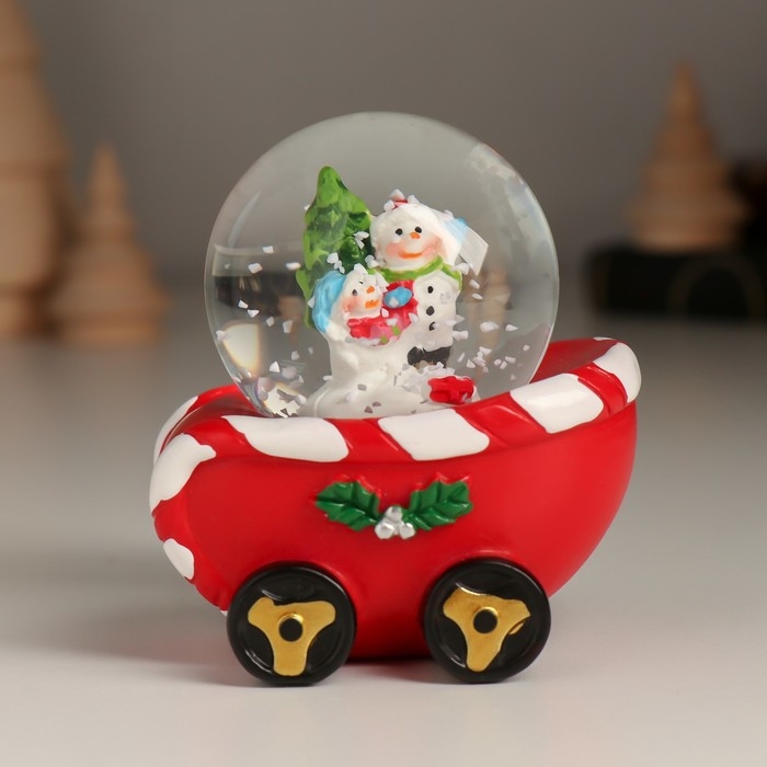 Сувенир полистоун водяной шар "Новогодний поезд" набор 4 шт 26х5,4х8,7 см
