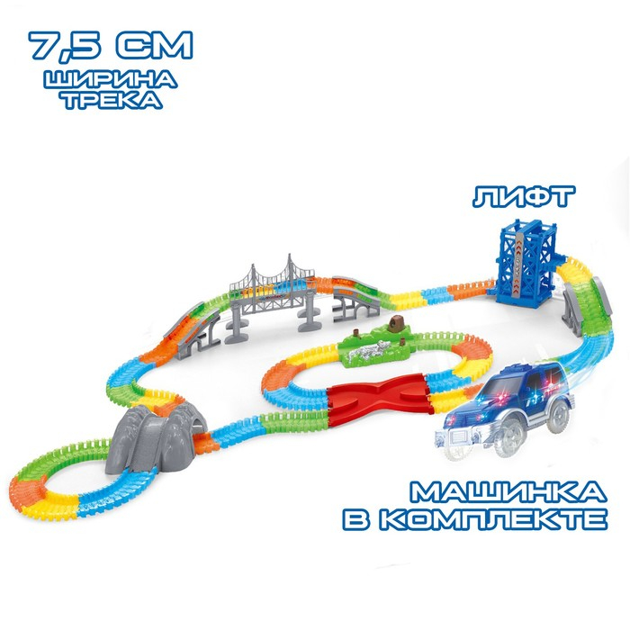 Автотрек «Магический Трек», гибкий, светится в темноте, 261 деталь, лифт