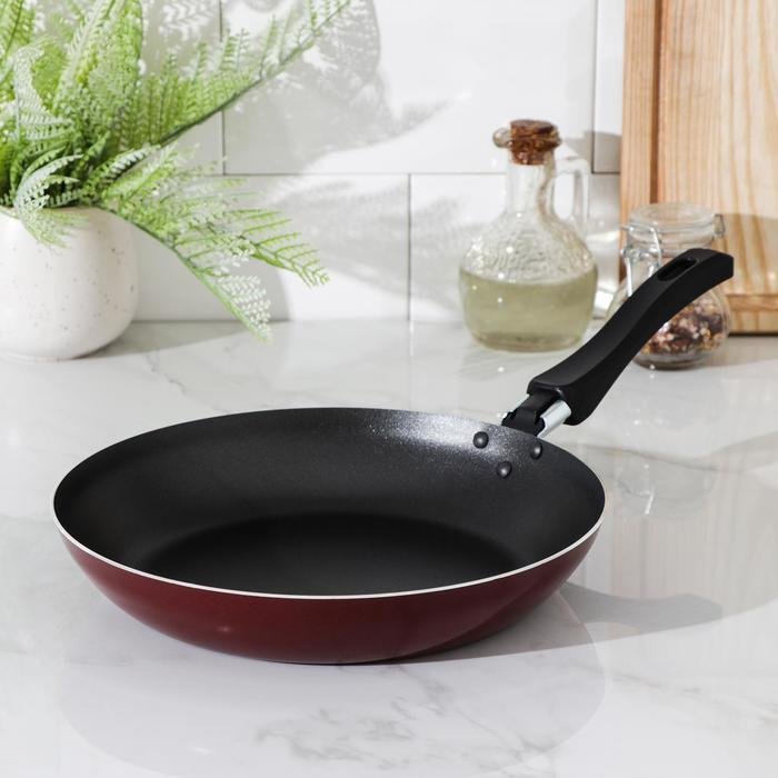 Сковорода Prosto, d=24 см, пластиковая ручка, антипригарное покрытие, цвет бордовый
