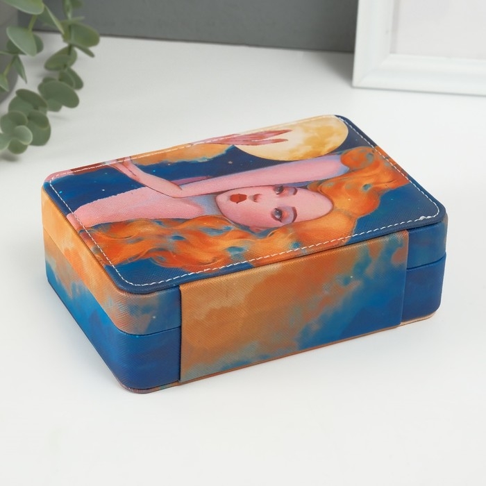 Шкатулка кожзам для украшений "Златовласая девушка с луной" 11х16х5,5 см