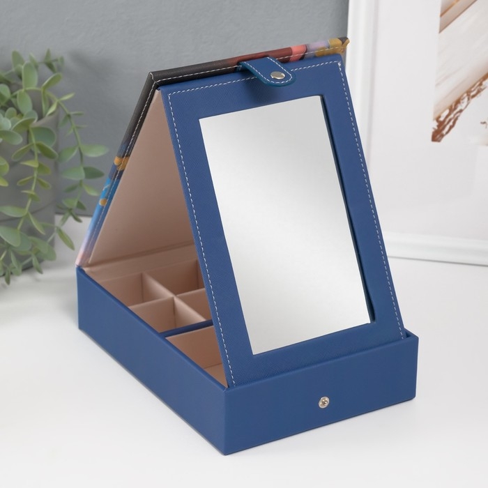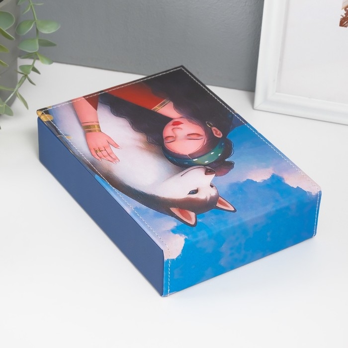 Шкатулка кожзам для украшений с зеркалом "Девушка с хаски" 15х21,5х5,5 см