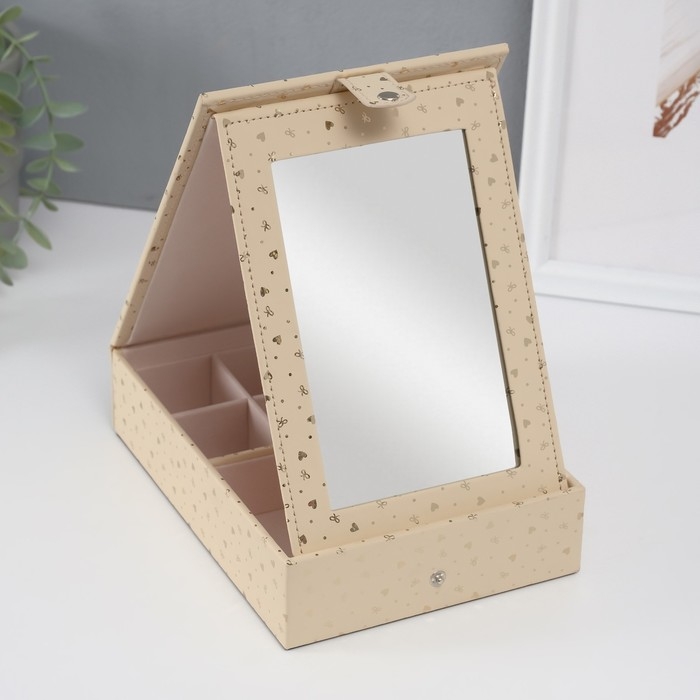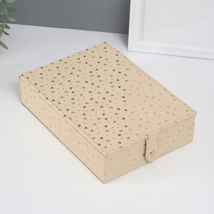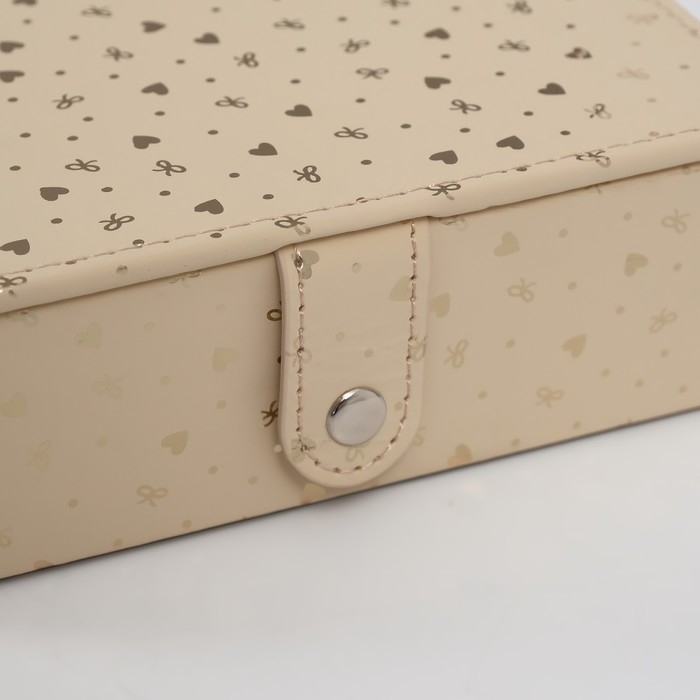 Шкатулка кожзам для украшений с зеркалом "Сердечки" золото матовое тиснение 15х21,5х5,5 см 1052446