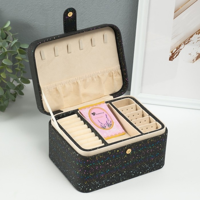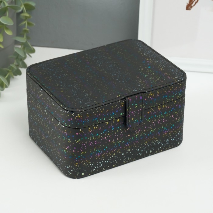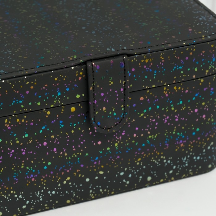 Шкатулка кожзам для украшений "Ночное небо" голография чёрная 14х18х10,5 см