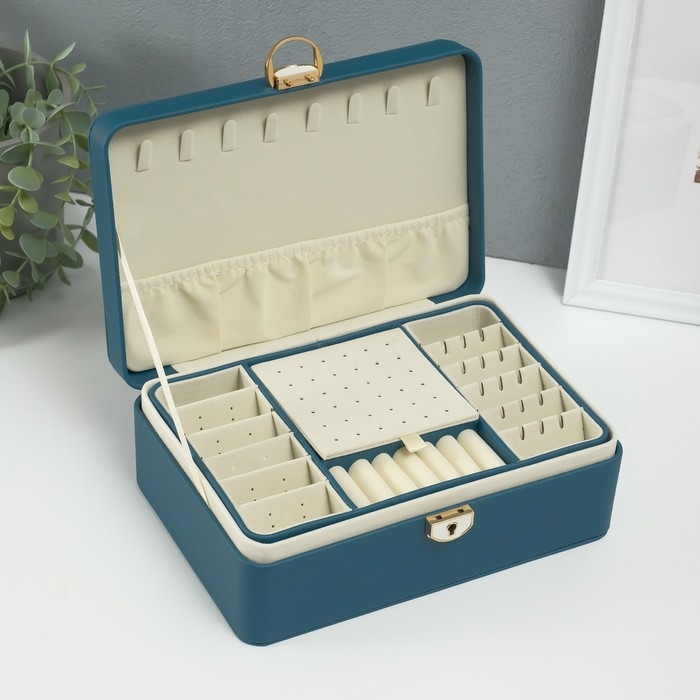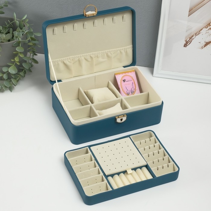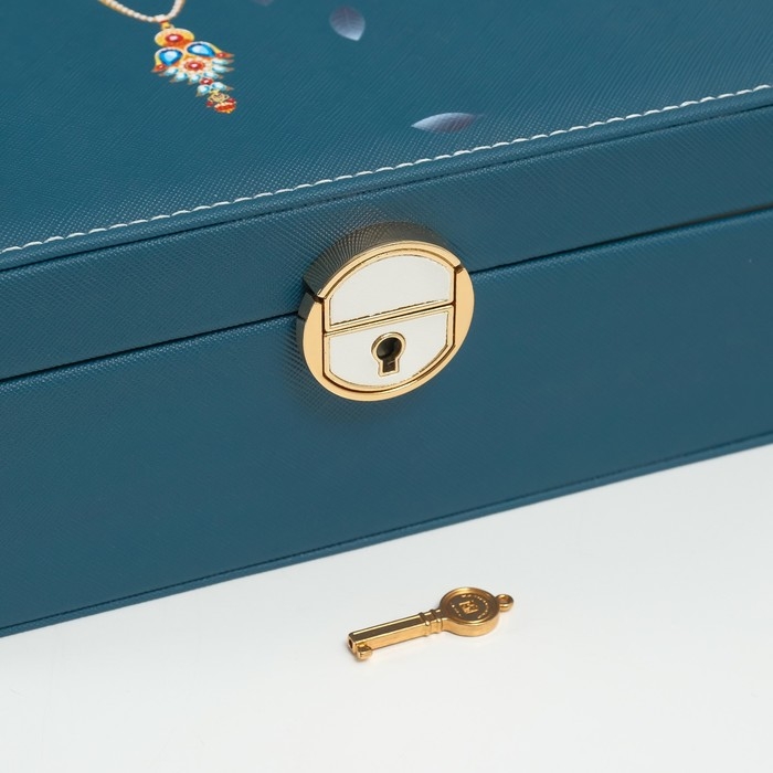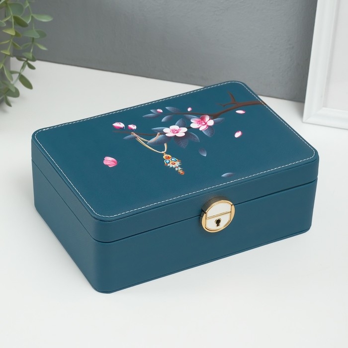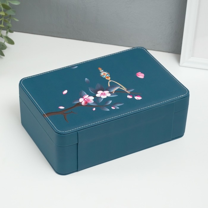 Шкатулка кожзам для украшений "Кулон на сакуре" синяя 16х24х8,5 см