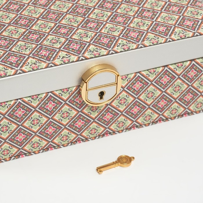 Шкатулка кожзам для украшений "Мозаика из плитки" зелёная 16,3х24х8,5 см