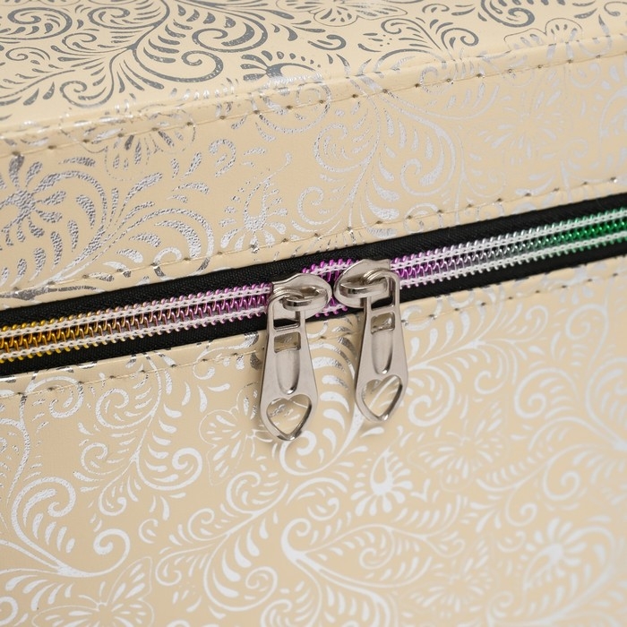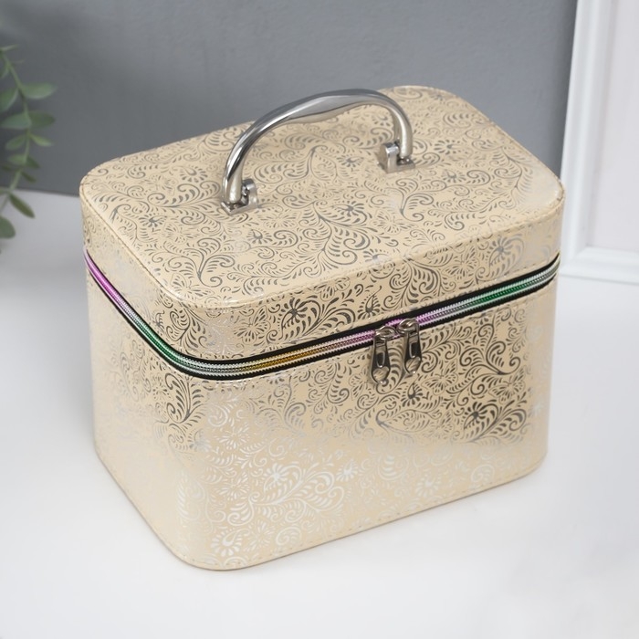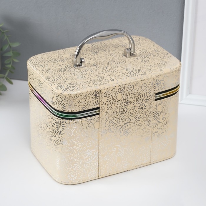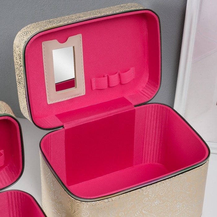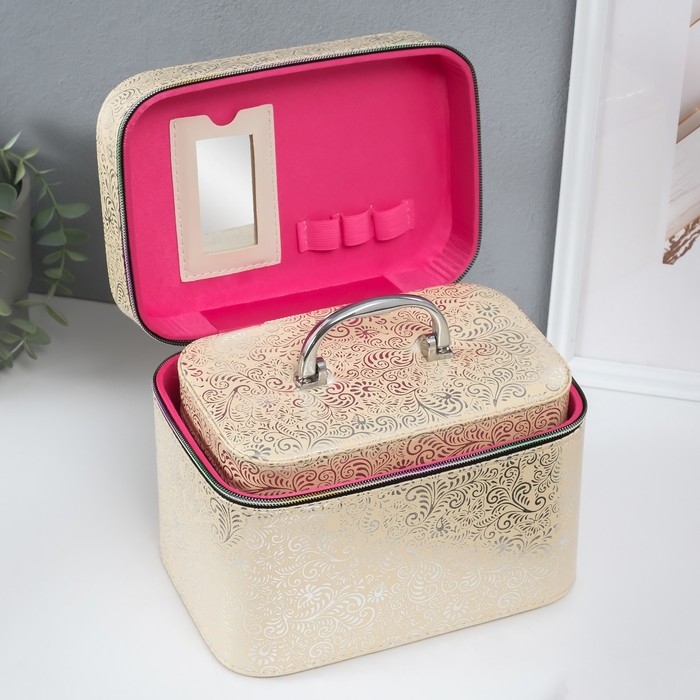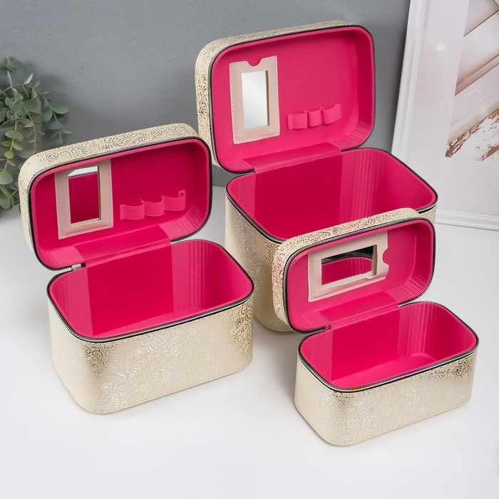 Шкатулка кожзам с зеркалом "Узоры, бабочки" беж н-р 3 шт 19х10,5х10,5 21х13х14 15х23х17см