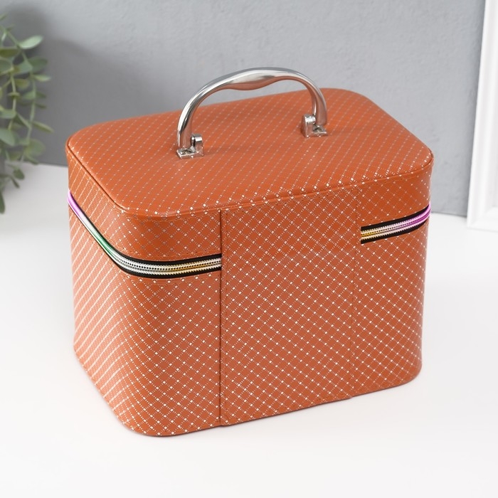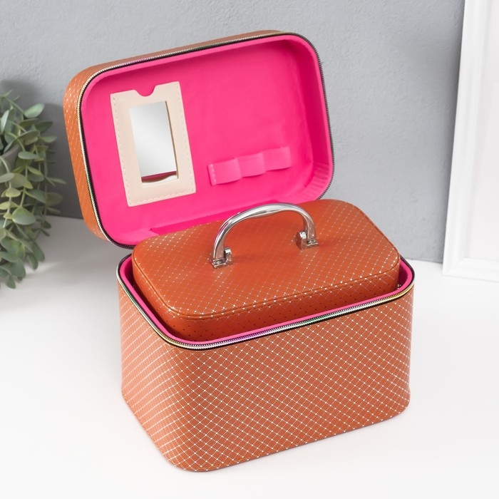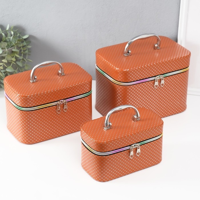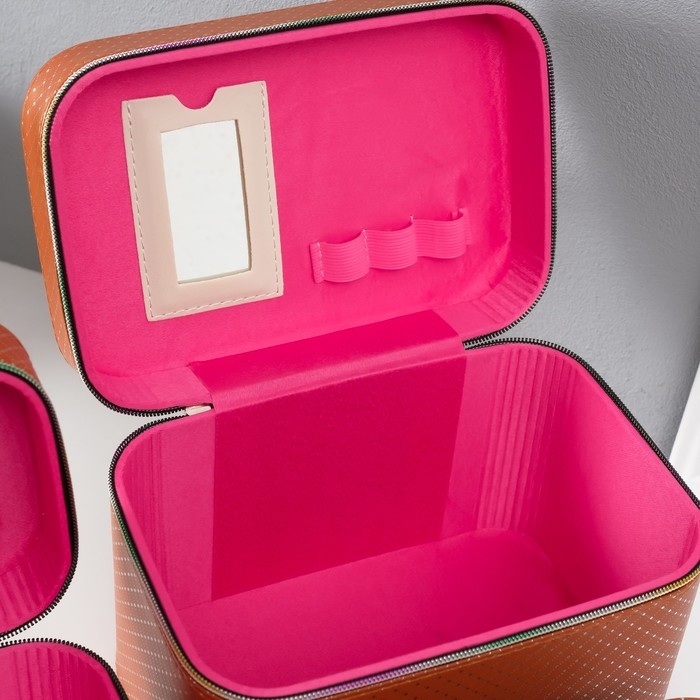Шкатулка кожзам с зеркалом "Ромбы" охра набор 3 шт 19х10,5х10,5 21х13х14 15х23х17 см
