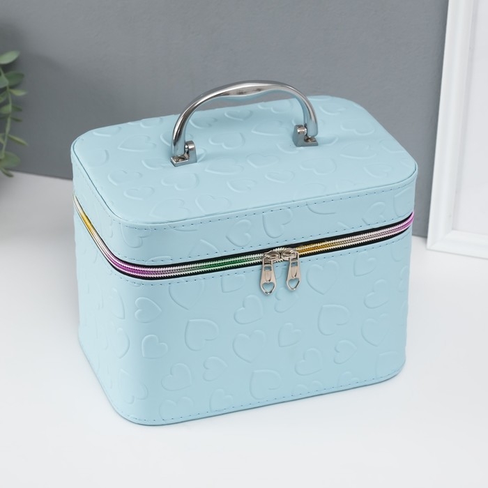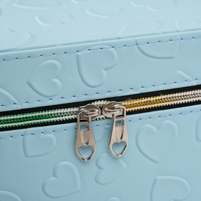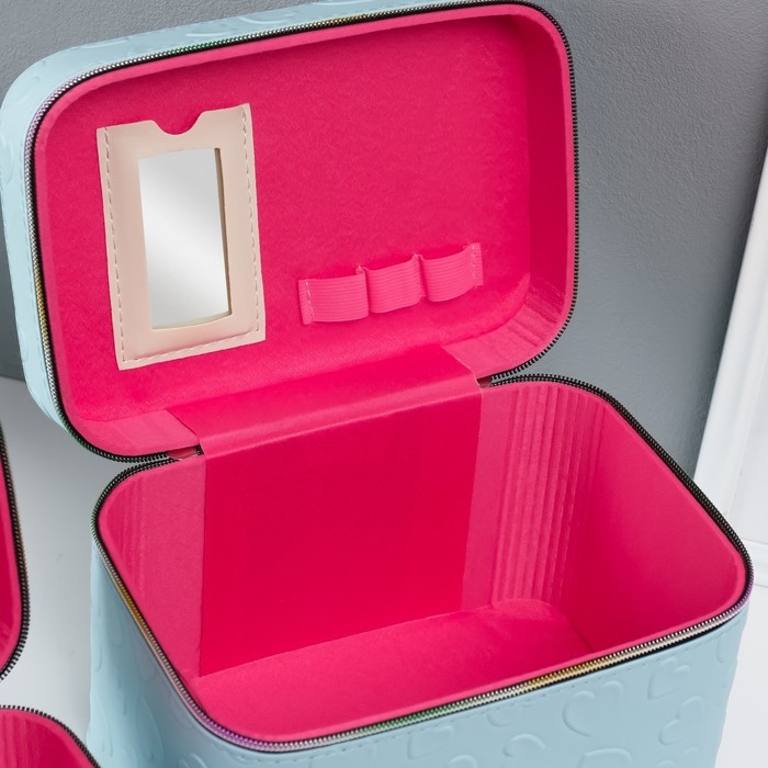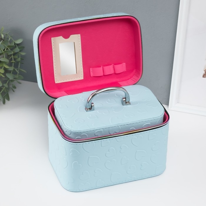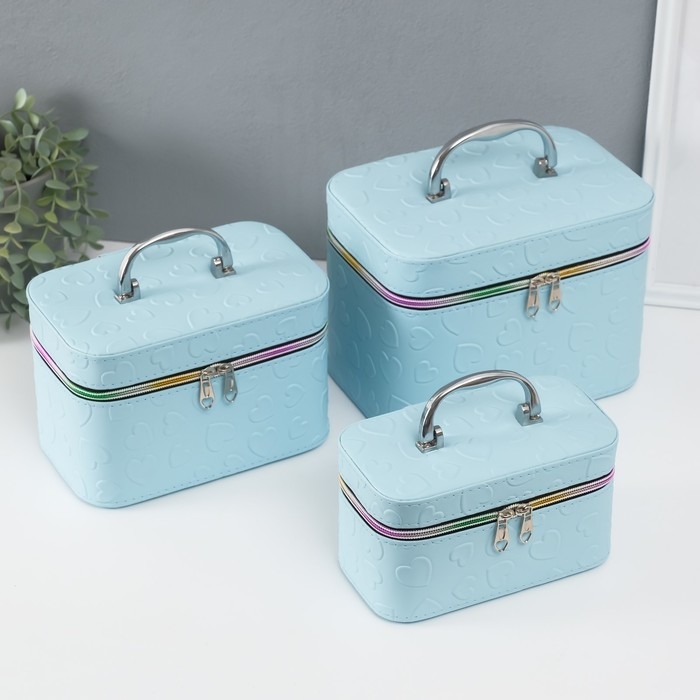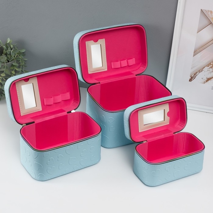 Шкатулка кожзам с зеркалом "Сердца" св-голубая набор 3 шт 19х10,5х10,5 21х13х14 15х23х17 см