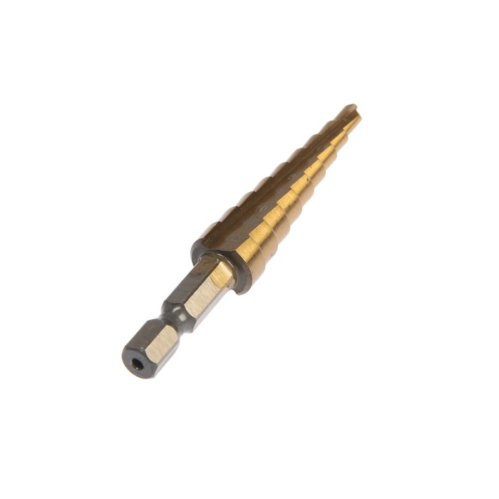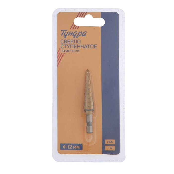 Сверло ступенчатое ТУНДРА, HSS, TiN, шестигранный хвостовик, 4-12 мм