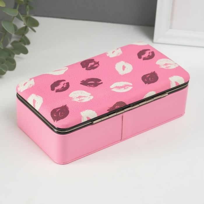 Шкатулка кожзам для украшений "Поцелуи" розовая 10х18х6 см