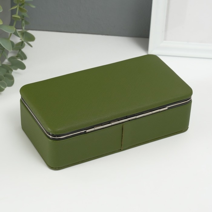 Шкатулка кожзам для украшений "Мелкая рябь" оливковая 10х18х6 см