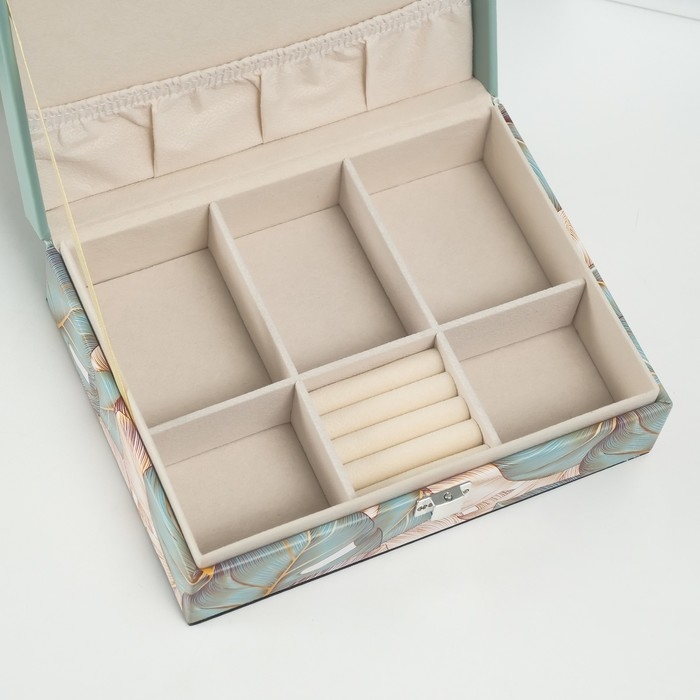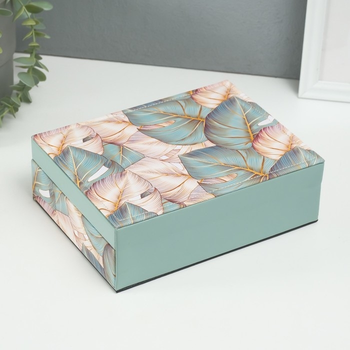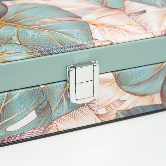 Шкатулка кожзам для украшений "Пальмовые листья" зелёная 16,5х21,5х7 см