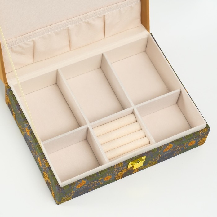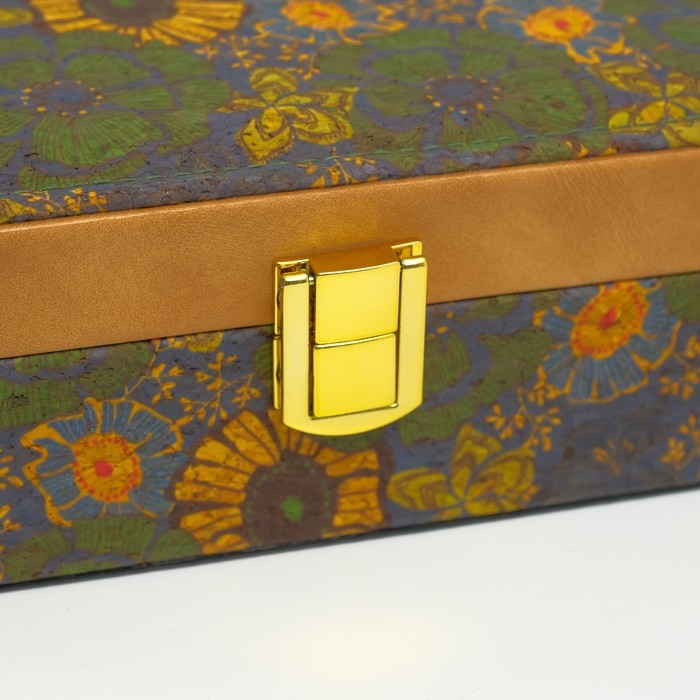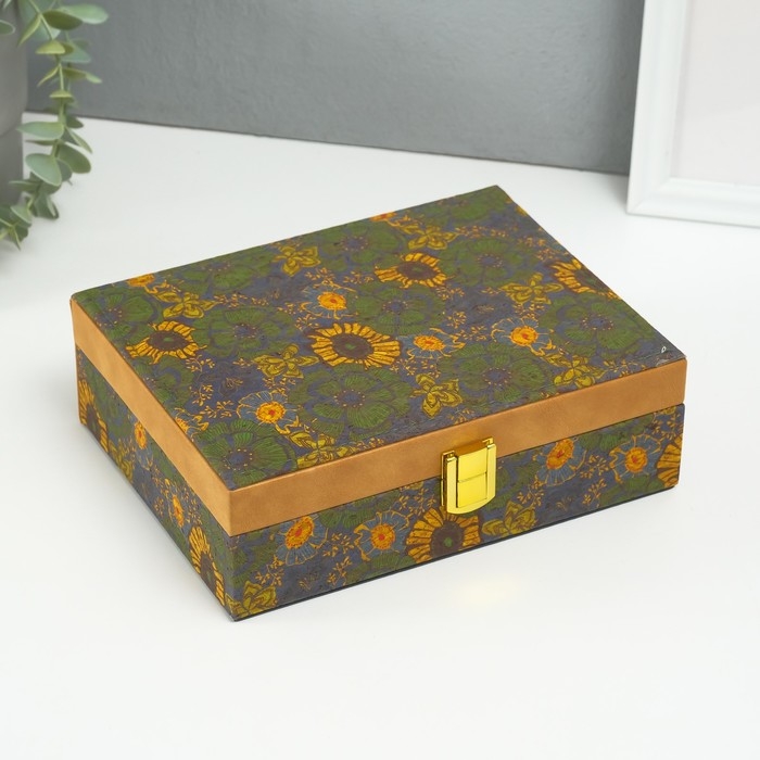 Шкатулка кожзам для украшений "Подсолнухи" пробка 16,5х21,5х7 см