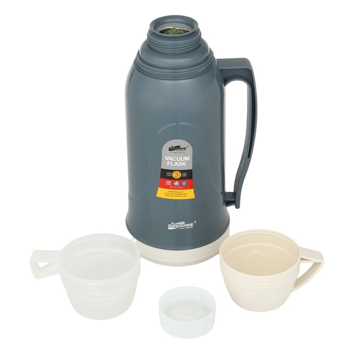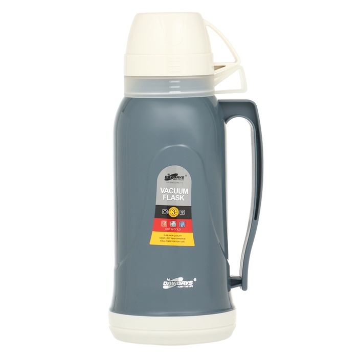 Термос 1.7 л, со стеклянной колбой, сохраняет тепло 14 ч, 14 х 34 см, серый