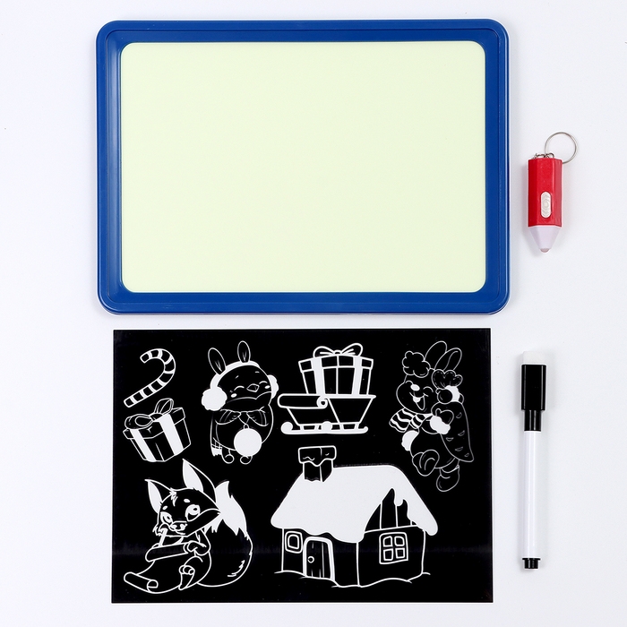 Рисование светом. Набор для рисования в темноте «Новый год», голубой, А5