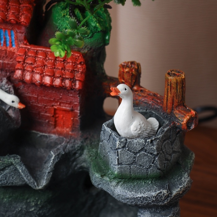 Фонтан "Дом под деревом, каменные кадки" 27х18 см (с подсветкой, без шарика)