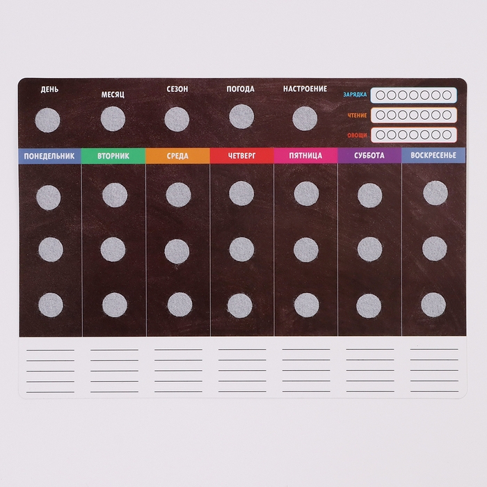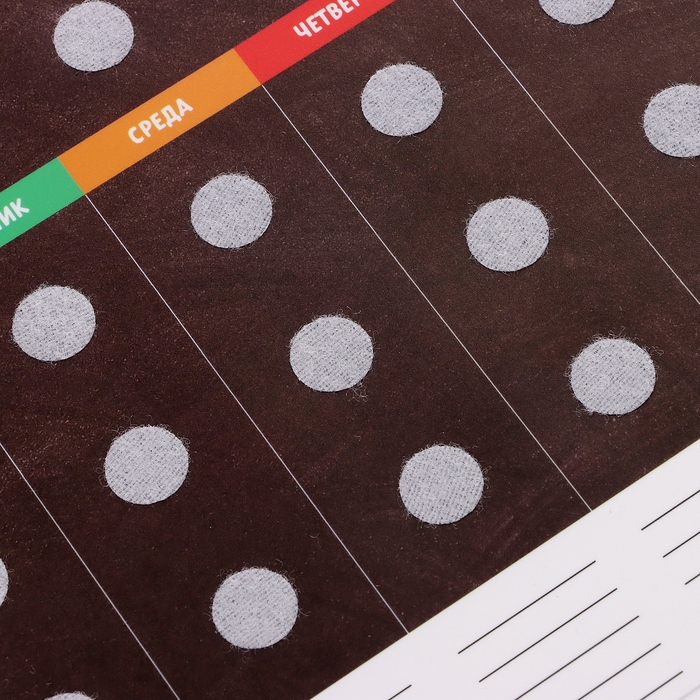 Игрушка на липучках — это развивающая игра, созданная специально для малышей. Набор включает в себя основу с полями и 69 деталей, которые помогут ребёнку планировать свои дни.