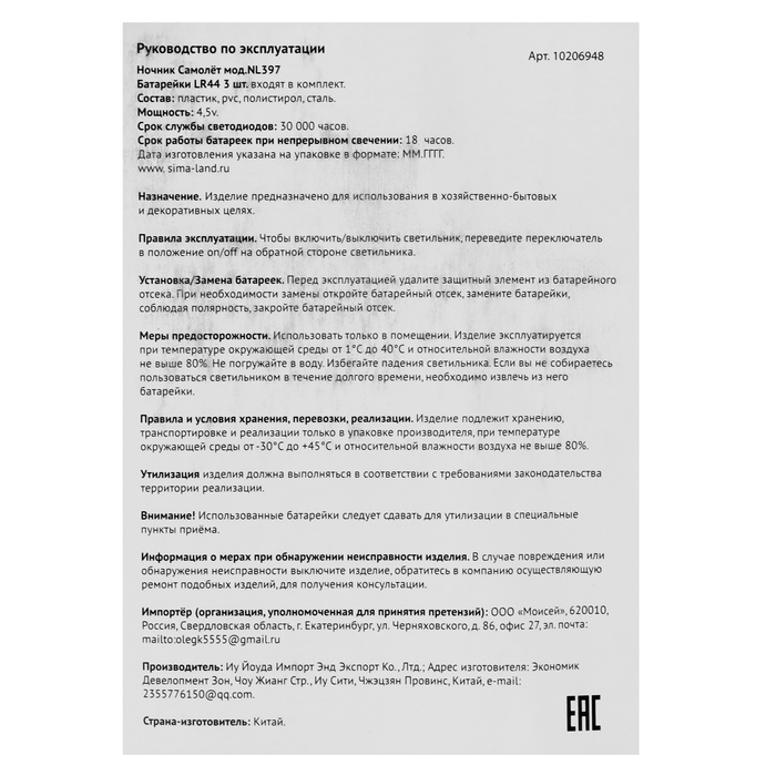 Страна изготовитель