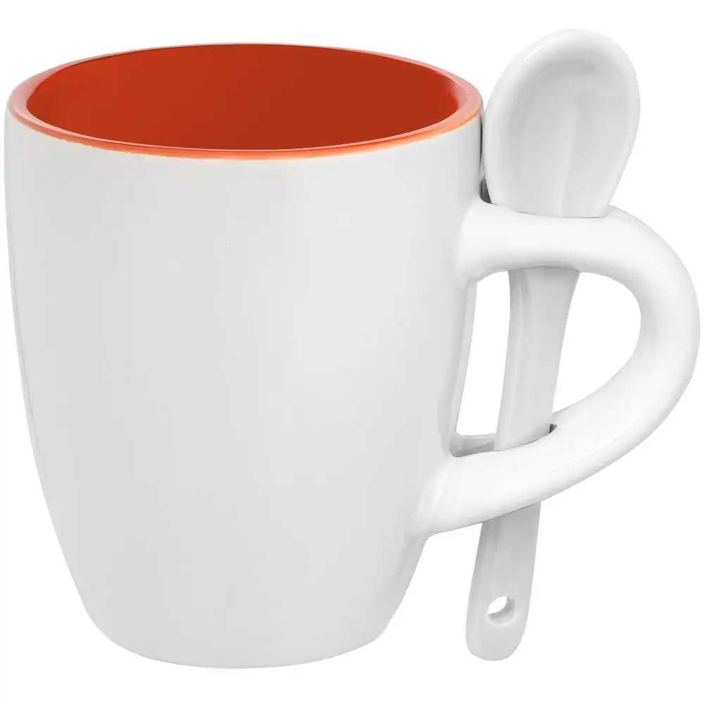 Кофейная кружка Pairy с ложкой, оранжевая с белой