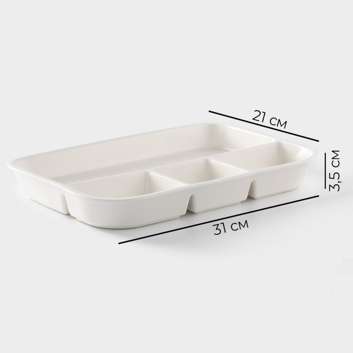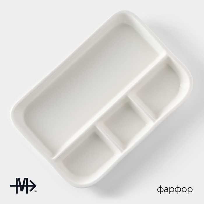 Менажница фарфоровая 4 ячейки Magistro «Бланш», 31×21×3,5 см, цвет белый