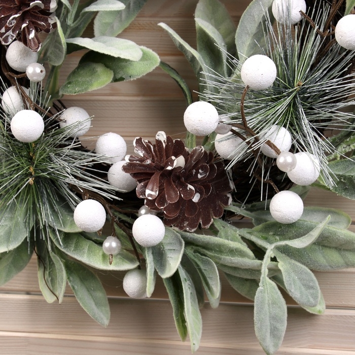 Венок новогодний d-38 см "Зимние ягодки белые"