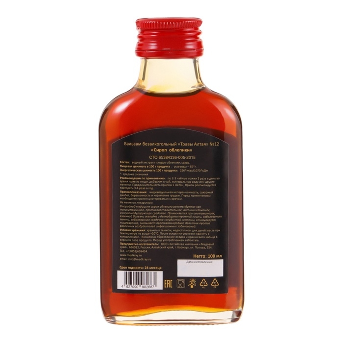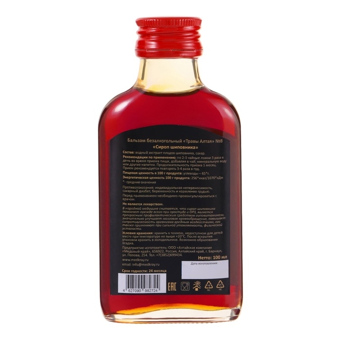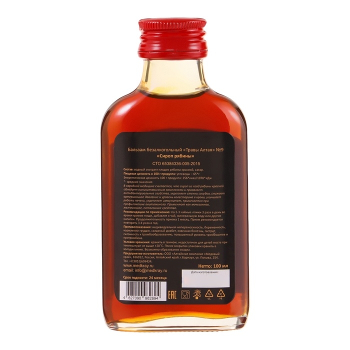 Бальзам безалкогольный на травах «Противопростудный»: рябина, золотой корень, мать-и-мачеха, шиповник,девячил, душица, малина, в пластиковой бутылке, 250 мл